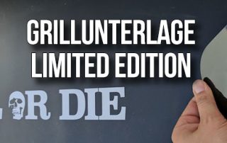 Wer seinen Boden rund um den Grill schützen möchte, wird die GRILL OR DIE Grillunterlage lieben. Vor Fett, Sauce und Feuer schützt sie den Boden.